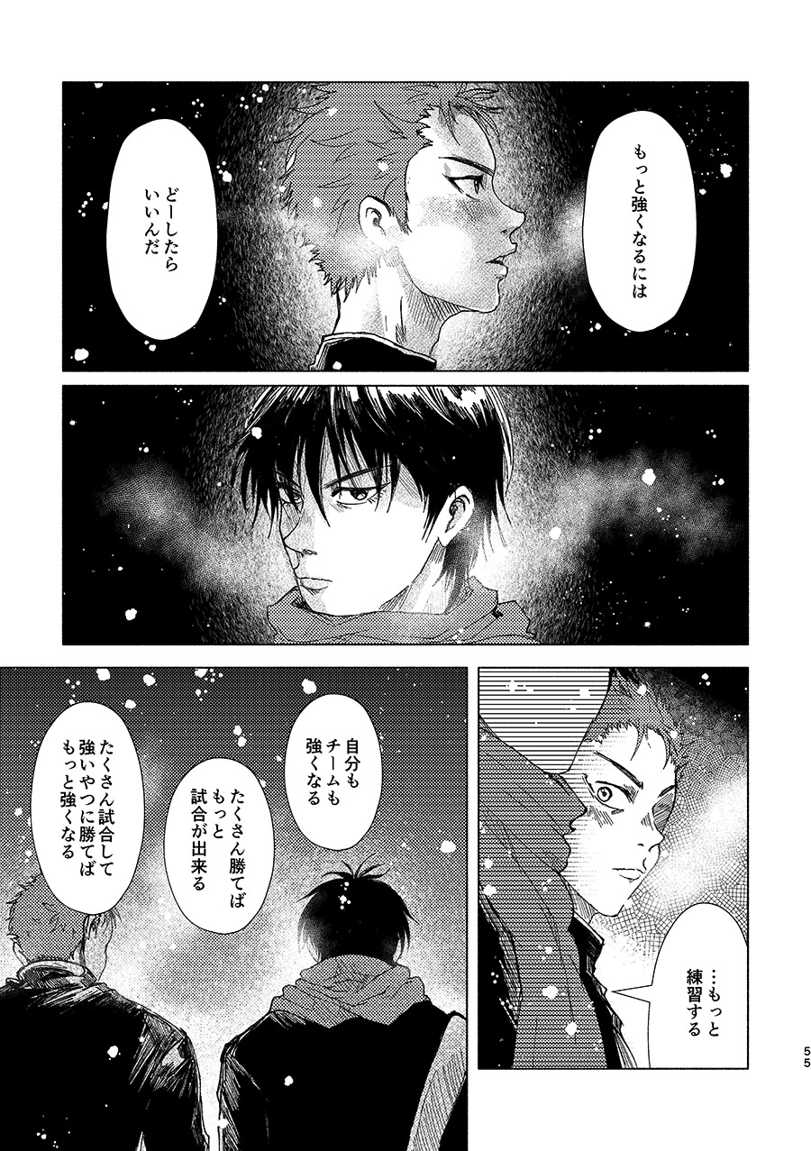 原作最終回以降の話。映画TFSDの要素も入っています。 花道の負傷で初めて喪失感を覚える流川と、 復帰した花道がどのようにしてバスケ選手になっていくか――というお話です。 Twitterやpixivで掲載した一部の作品を、加筆修正して再録しています。