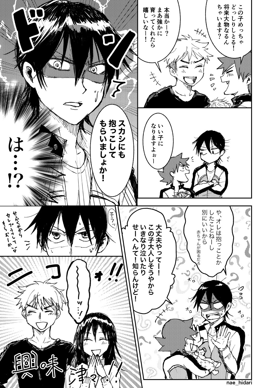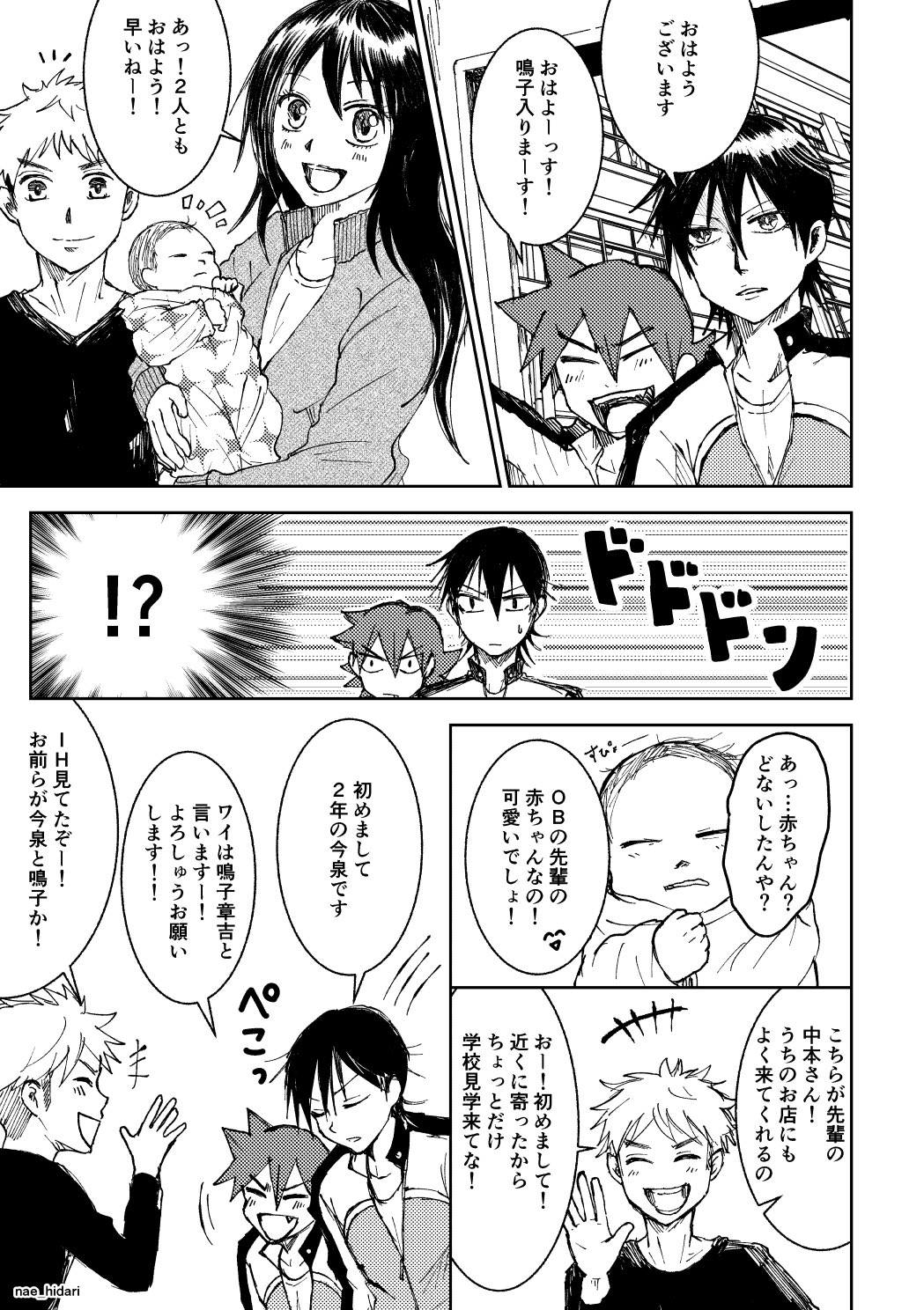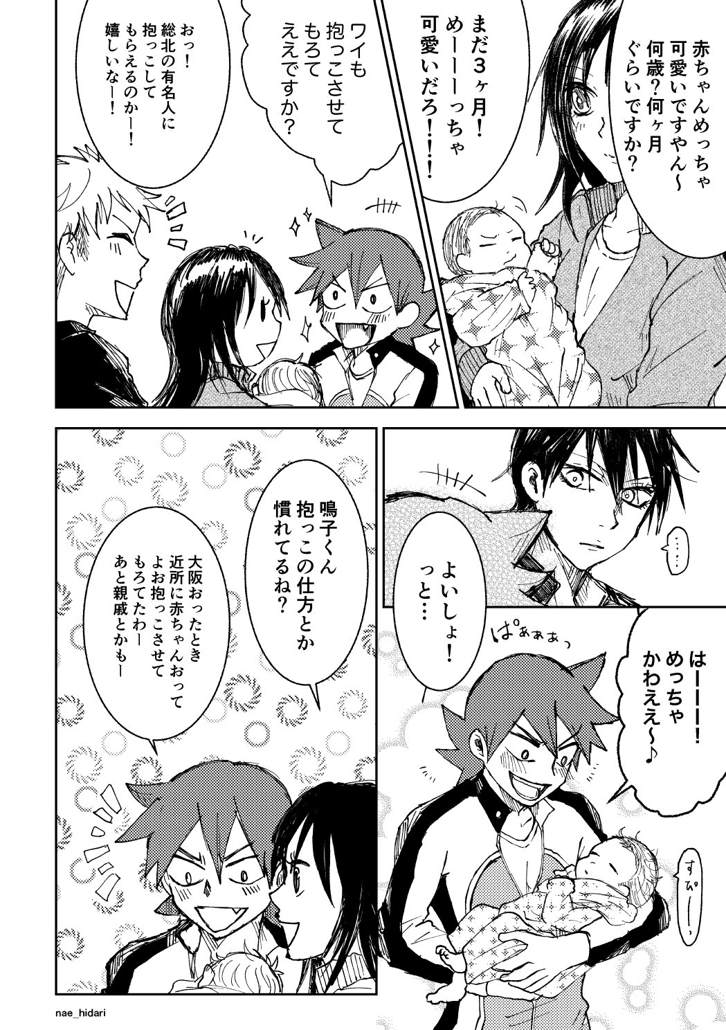 2020年11月23日の今鳴の日漫画。初めての赤ちゃんとの遭遇。