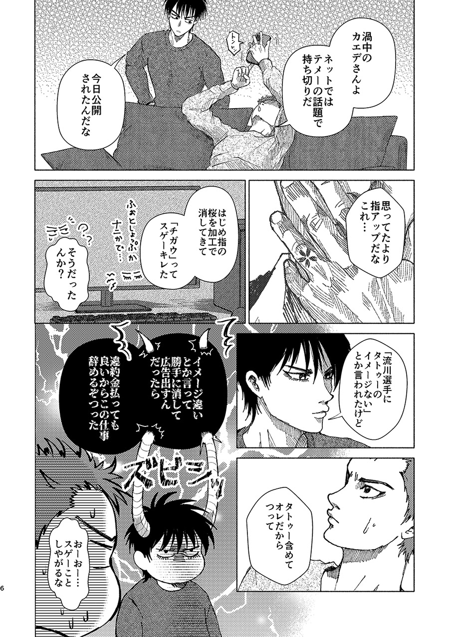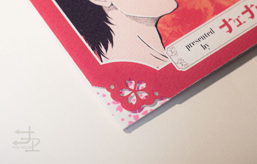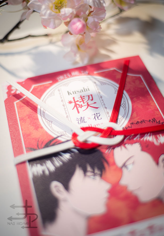 楓と桜のタトゥーが登場するので、この二つの要素もたくさん入ったデザインにしたいなと思い、桜の角レース・桜の遊び紙なども使っています。